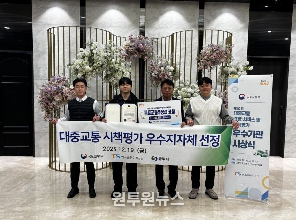 (원투원뉴스) 충주시가 19일 국토교통부 주관 2025년 대중교통 시책평가에서 우수기관 표창을 수상하며, 시민 중심 대중교통 정책의 성과를 인정받았다.