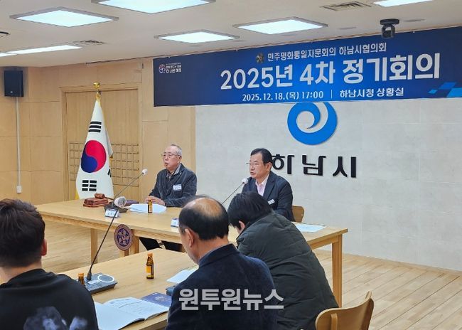 (원투원뉴스) 민주평화통일자문회의 하남시협의회는 12월 18일 오후 5시 하남시청 상황실에서 하남시장, 자문위원 등 32명이 참석한 가운데‘화해·협력의 남북관계 재정립을 위한 정책방향’을 주제로‘2025년 4차 정기회의’를 개최했다.
