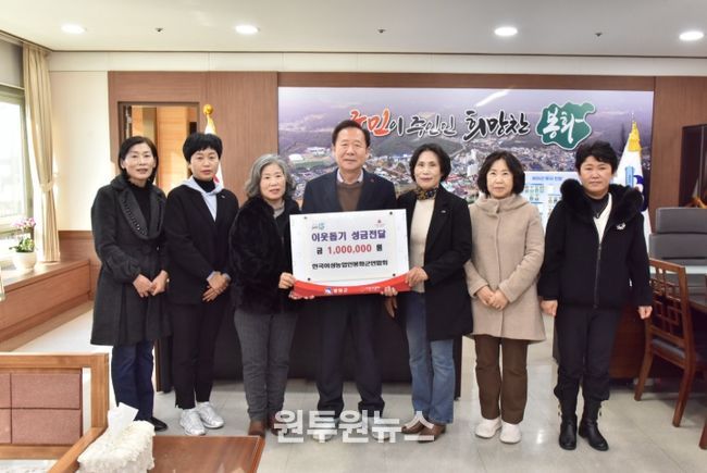 (원투원뉴스) 한국여성농업인봉화군연합회(약칭:한여농, 회장 이미자)는 지난 15일 봉화군청 군수실을 방문해 이웃돕기 성금 100만 원을 기탁하며‘희망2026 나눔캠페인’에 동참했다.