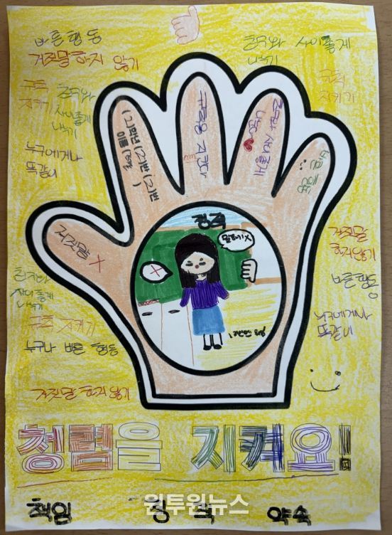 수업에 참여한 도리원초등학교 4학년 한 학생은 “처음에는 청렴이 무엇인지 몰라 어렵게 느껴졌지만, 수업을 통해 청렴이 왜 중요한지 알게 됐고, 필요한 것만 쓰고 욕심을 줄이는 ‘절제’가 청렴의 덕목이라는 것도 배웠다”라고 소감을 전했다.