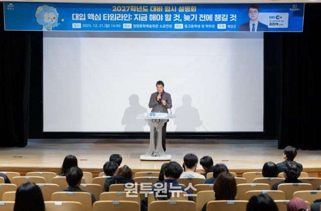 (원투원뉴스) 청양군은 ‘청양 탑클래스’ 사업의 일환으로 대입 입시설명회를 개최하며, 지역에서도 수준 높은 입시 정보를 나눌 수 있는 배움의 장을 마련했다.