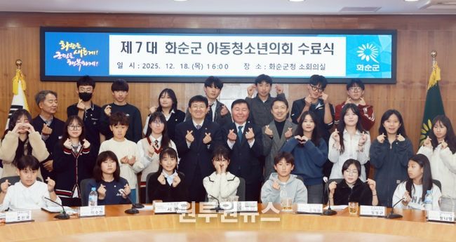 (원투원뉴스) 화순군은 지난 18일 군청 소회의실에서 굿네이버스 전남북부지부(지부장 강성규)와 함께 ‘제7대 아동·청소년의회 수료식’을 개최했다고 밝혔다.