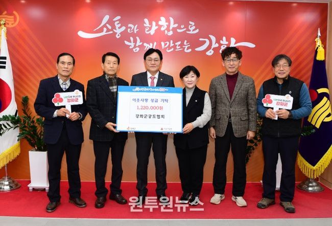 (원투원뉴스) 강화군은 지난 19일 강화군 궁도협회(회장 양재형) 회원들이 참여한 ‘천원의 행복 모금 운동’을 통해 모은 기부금 1,220,000원을 사회복지공동모금회를 통해 기탁했다고 밝혔다.