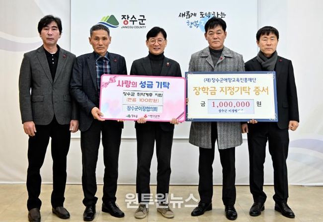 (원투원뉴스) 장수군 이장협의회가 지역인재 양성과 이웃사랑 실천을 위해 장수군 애향교육진흥재단과 전북사회복지공동모금회에 장학금과 이웃돕기 성금 100만원을 각각 기탁했다고 22일 밝혔다.