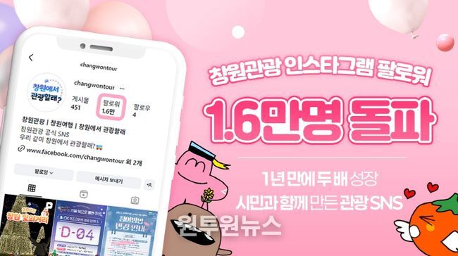 (원투원뉴스) 창원특례시는 창원관광 공식 인스타그램 채널이 올해 말 기준 팔로워 수 1만 6,000명을 돌파하며, 지난해 연말 약 9천 명 대비 1년 만에 두 배 가까운 성장을 기록했다고 22일 밝혔다.