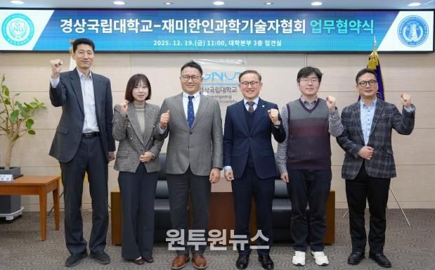 협약식에는 경상국립대학교 권진회 총장을 비롯해 본부 보직자와 글로컬대학사업단 관계자, 재미한인과학기술자협회 류재현 회장(아이다호대 교수)이 참석했으며, 양 기관은 실질적이고 지속 가능한 협력 기반을 마련하는 데 뜻을 모았다.