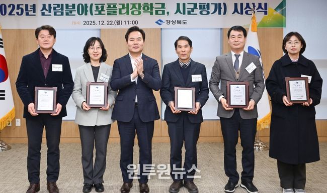 (원투원뉴스) 경상북도는 22일 도청 사림실에서 ‘2025년 산림분야 종합평가’우수 시군에 표창패와 포상금을 수여하고 한 해 동안 산림시책 행정 추진을 위해 노력한 시군 관계자들을 격려했다.