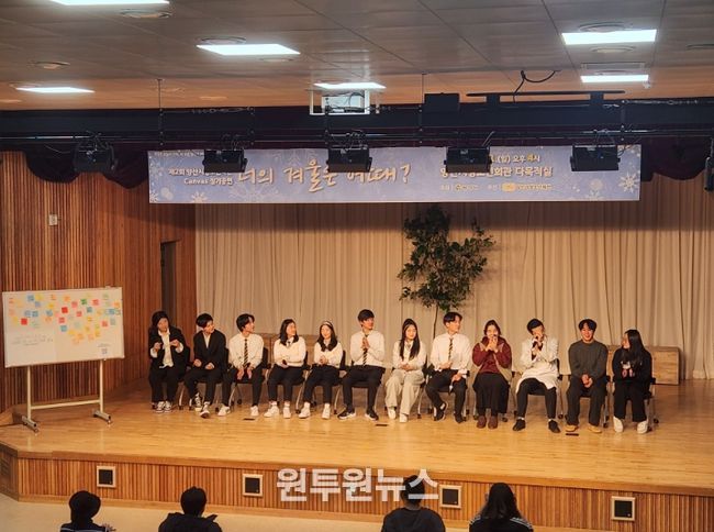연극 '너의 겨울은 어때?'는 각자의 상처와 고민을 안고 겨울을 보내는 청소년들이 서로를 만나 변화해 가는 과정을 그린 작품으로, 단원들이 대본 집필과 장면 구성, 연출·기획 논의에 직접 참여해 완성했다.