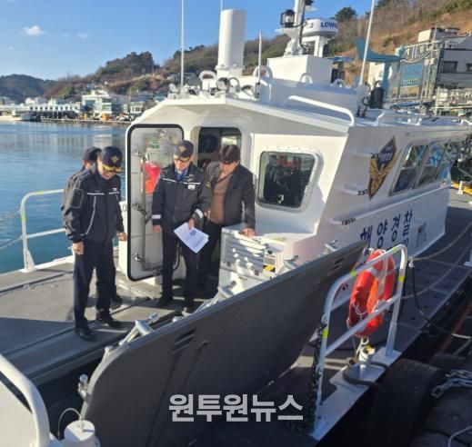 (원투원뉴스) 울진해양경찰서는 22일, 신형 연안구조정 현장 점검과 원거리 조업선 특별점검을 잇달아 실시했다.