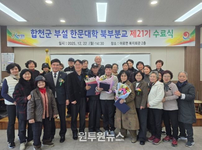(원투원뉴스) 합천군 부설 한문대학 제21기 북부분교 야로교실 수료식이 22일 야로면복지회관에서 개최됐다.