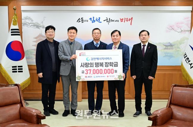 (원투원뉴스) 김천시는 지난 19일, 김천에너지서비스㈜(대표 박영진)로부터 관내 저소득 중·고등학생을 위한 장학금 3,700만 원을 전달받았다고 밝혔다.