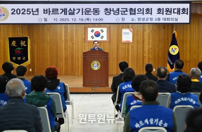 (원투원뉴스) 바르게살기운동 창녕군협의회(회장 곽철현)는 지난 18일 창녕군청 대회의실에서 ‘2025년 바르게살기운동 회원대회’를 개최하며 한 해를 마무리하는 뜻깊은 시간을 가졌다.