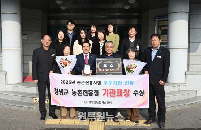 (원투원뉴스) 창녕군은 경상남도농업기술원 천심관에서 열린 2025년 경상남도 농촌진흥사업 성과보고회에서 중앙단위 농촌진흥사업 우수상을 수상했다고 23일 밝혔다.