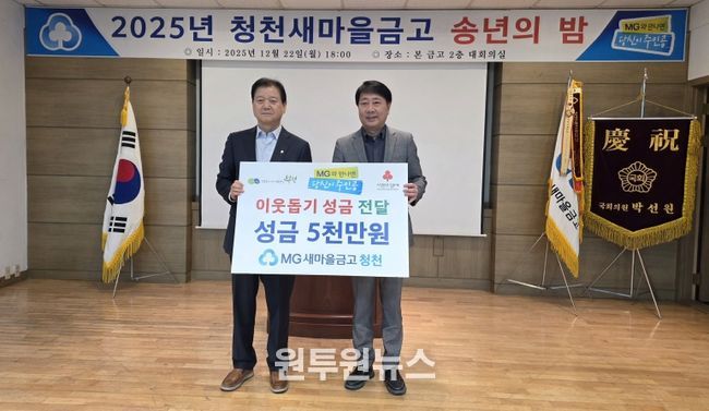 권기동 청천새마을금고 이사장은 “지역 주민과 함께 성장해 온 금융기관으로서 지역사회에 보답하는 것은 당연한 책무”라며 “앞으로도 나눔과 상생의 가치를 바탕으로 지역과 함께하는 새마을금고가 되겠다”고 밝혔다.