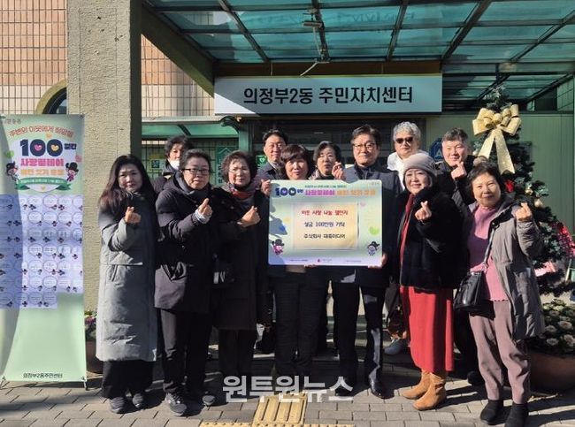(원투원뉴스) 의정부시 의정부2동주민센터는 12월 22일 주식회사 대륙미디어가 ‘100일간 사랑릴레이 배턴 잇기’에 동참해 취약계층을 위한 성금 100만 원을 전달했다고 밝혔다.