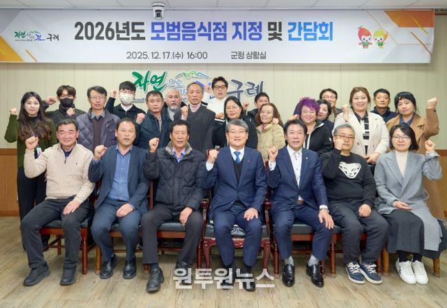 (원투원뉴스) 구례군은 지난 12월 17일, 2026년도 모범음식점 30개소(신규 3, 재지정 27)를 선정하여 지정증을 교부했다고 밝혔다.