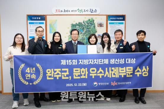 (원투원뉴스) 완주군이 ‘무장애 문화’를 행정 전반에 접목한 정책 성과를 인정받아, 행정안전부가 주최하고 한국생산성본부가 주관한 ‘제15회 지방자치단체 생산성대상’ 문화분야에서 기관표창을 수상했다.