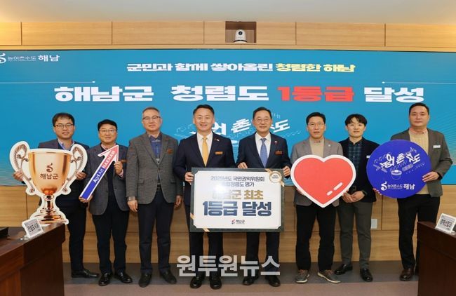 (원투원뉴스) 해남군이 국민권익위원회가 실시한 2025년 공공기관 종합 청렴도평가에서 최고 등급인 1등급을 달성했다. 2002년 공공기관 청렴도 평가 시행 이후 해남군 최초의 성과이다.