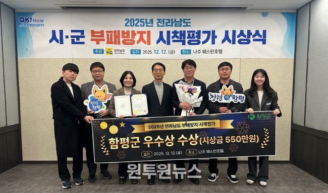 또한 함평군은 2025년 전라남도 부패방지 시책평가에서도 청렴 시책 우수사례로 선정돼 ‘우수상’을 수상했으며, 이번 종합청렴도 상승과 맞물려 청렴 정책의 실효성과 지속성을 동시에 인정받아 청렴 행정의 신뢰도를 높이고 있다.