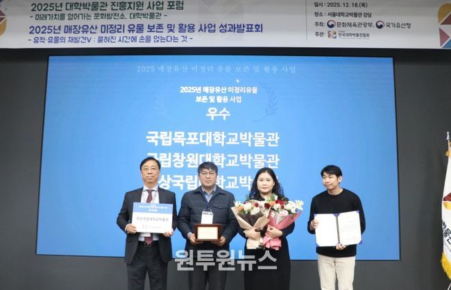 (원투원뉴스) 경상국립대학교 박물관이 2025년 매장유산 미정리유물 보존 및 활용사업 평가에서 ‘우수관’으로 선정돼, 지난해 최우수기관 선정에 이어 2년 연속 우수성을 인정받는 성과를 거두었다.