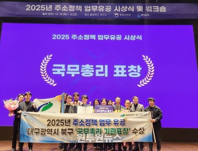 (원투원뉴스) 대구 북구청은 2025년 주소정책을 성공적으로 추진한 공로를 인정받아 국무총리 기관 표창을 수상했다.