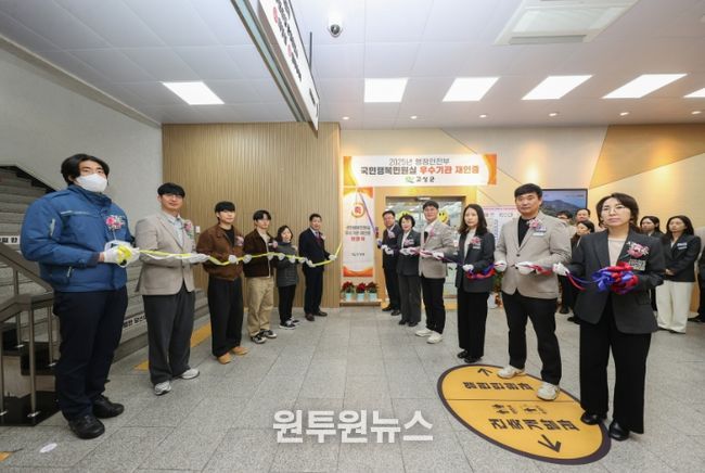 (원투원뉴스) 고성군은 12월 23일 군청 본관 1층 열린민원과 앞에서 행정안전부 주관 ‘국민행복민원실 우수기관 재인증 선정 현판식’을 개최했다.
