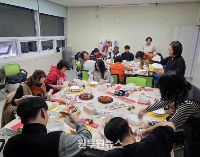 (원투원뉴스) 고성군 고성읍 자원봉사캠프는 지난 12월 20일 토요일, 고성군 평생학습센터에서 ‘미리 크리스마스 케이크 만들기’ 활동을 성황리에 개최했다.