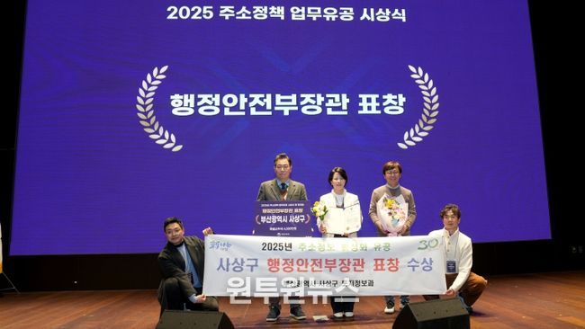 (원투원뉴스) 부산 사상구는 지난 18일 행정안전부 주관 ‘2025년 주소정책 성과공유 워크숍’에서 주소정보 업무평가 우수기관으로 선정돼 행정안전부 장관 표창을 수상하고, 특별교부세 4천만 원을 확보했다고 밝혔다.