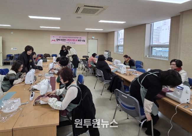 이날 행사는 연말 연시 추워지는 날씨에 체온 유지에 큰 도움을 주는 목도리를 제작하여 관내 장애인복지시설 이용자들에게 온기를 나누기 위해 마련한 것으로 여성단체 소속 회장들이 재봉틀을 사용하여 50여 개의 목도리를 직접 만들어 ‘정성’이라는 가치를 더했다.