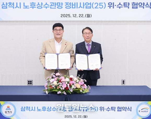 (원투원뉴스) 삼척시는 노후 상수관망 정비사업의 효율적인 추진을 위해 12월 22일 오전 11시, 삼척시청 소회의실에서 한국수자원공사(K-water) 한강유역본부와 위수탁 협약을 체결했다.