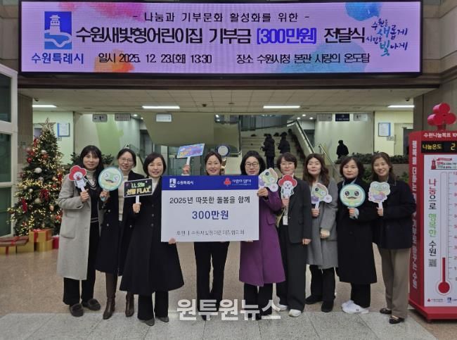 수원새빛형어린이집협의회는 연말을 맞아 회원들의 뜻을 모아 이번 기부를 했다. 성금은 경기도사회복지공동모금회에 기탁돼 도움이 필요한 취약계층 지원에 사용될 예정이다.