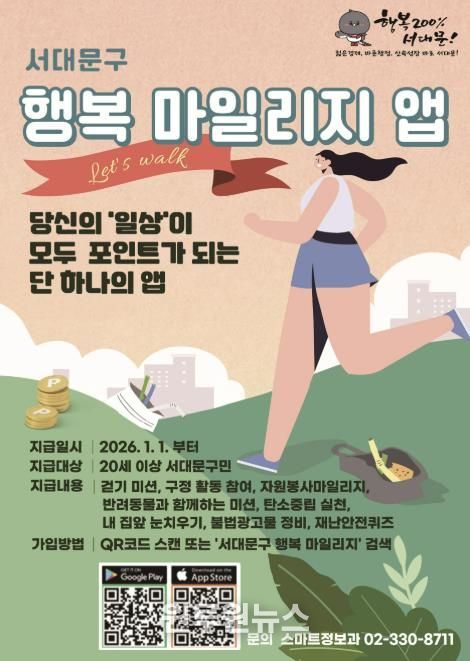 앞서 구는 올해 10월 21일 구민 건강 증진과 지역사회 참여 활성화를 위해 전국 지자체 최초의 포인트 통합관리 플랫폼인 ‘서대문구 행복 마일리지 앱’을 출시했다.