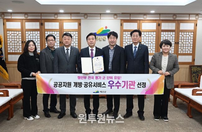 군 관계자는 “이번 장관상 수상은 행정의 노력뿐 아니라 군민이 함께 만들어낸 성과”라며 “앞으로도 공공자원을 적극적으로 개방·공유해 군민 누구나 생활 속에서 쉽고 편리하게 이용할 수 있는 서비스를 지속적으로 확대해 나가겠다”고 말했다.