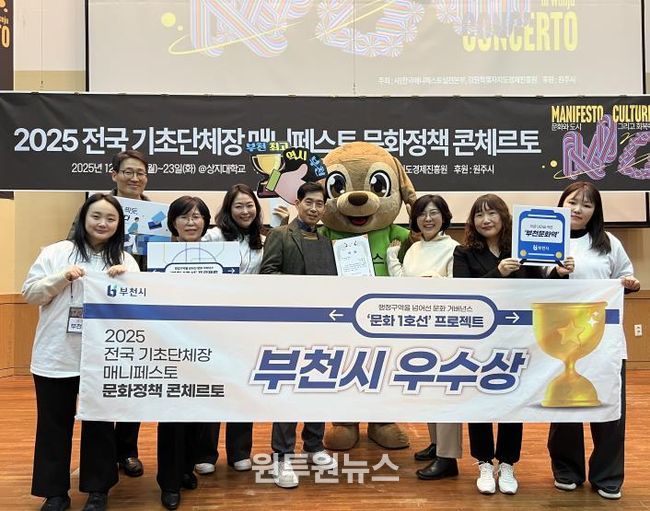 (원투원뉴스) 부천시는 지난 23일 상지대학교에서 열린 ‘2025 전국기초단체장 매니페스토 문화정책 콘체르토’에서 우수상을 받았다.