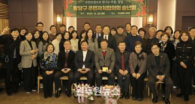 (원투원뉴스) 수원시 팔달구 주민자치협의회는 지난 12월 23일 관내 식당에서 각 동 주민자치회장, 사무국장 등 40여 명이 참석한 가운데 2025년 송년회를 개최했다.