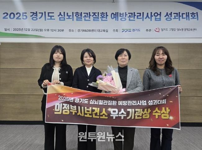 (원투원뉴스) 의정부시 보건소는 12월 22일 ‘2025년 경기도 심뇌혈관질환 예방관리사업 성과대회’에서 ‘우수 기관’으로 선정돼 경기도지사 표창을 수상했다.