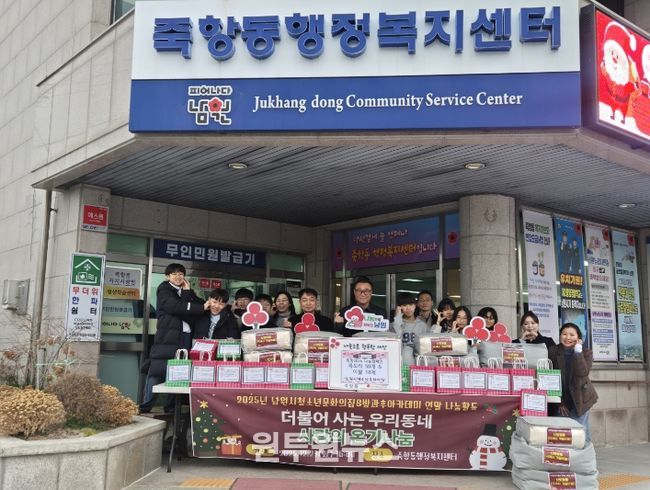 (원투원뉴스) 남원시청소년문화의집은 12월 23일 청소년들이 연말을 맞이하여 직접 준비한 나눔물품 전달을 위해 죽항동행정복지센터와 사랑의 온기나눔 행사를 진행했다.