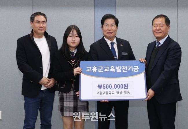 특히 고흥고등학교 학생들이 교내 스터디 카페(onedo) 운영으로 얻은 수익금 전액을 교육발전기금으로 기부해 따뜻한 기부 문화 조성에 의미를 더했다.