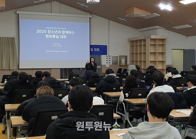 (원투원뉴스) 민주평화통일자문회의 인천서구협의회(회장 유정학)는 지난 22일 대인고등학교 강당에서 대인고 3학년 학생 및 교사 등 130여 명이 참석한 가운데 ‘2025년 청소년과 함께하는 평화통일 대화’를 개최했다.