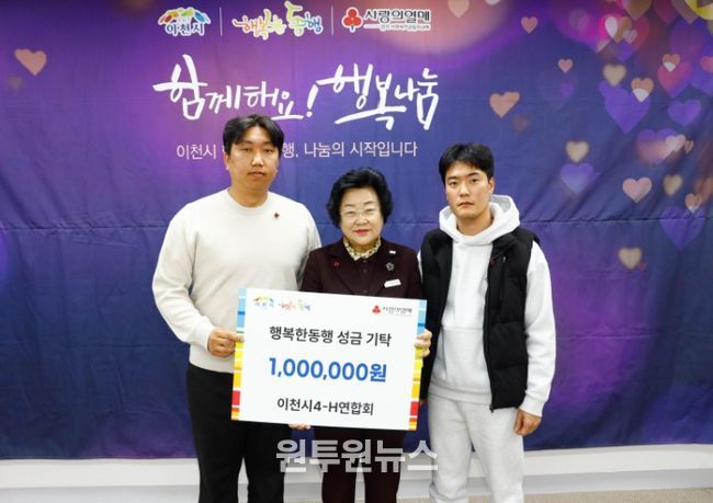 (원투원뉴스) 이천시4-H연합회는 12월 13일, 지역 내 취약계층 지원을 위해 ‘행복한 동행’에 100만 원을 기부했다.