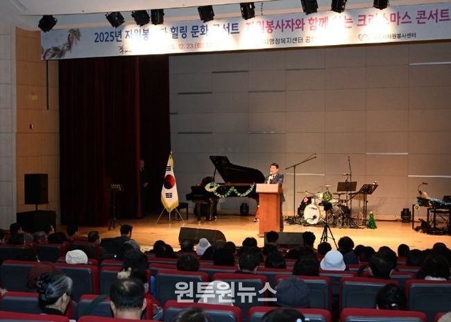 (원투원뉴스) 사단법인 구리시자원봉사센터는 12월 23일 구리시행정복지센터 공연장에서 자원봉사자 260여 명이 참석한 가운데 ‘2025년 자원봉사 힐링 문화 콘서트’를 성황리에 개최했다.