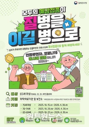 (원투원뉴스) 완주군이 겨울철 인플루엔자와 코로나19 유행에 대비해 2025~2026절기 인플루엔자 및 코로나19 예방접종을 실시하며, 두 백신의 동시 접종을 적극 권장한다고 밝혔다.