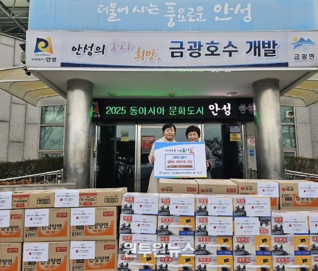 (원투원뉴스) 안성시는 12월 23일, 금광면 주민자치위원회 양영순 위원장이 겨울철 취약계층 가구의 따뜻한 겨울나기를 돕기 위해 라면, 김 등 생필품 100만원 상당을 금광면 행정복지센터에 기탁했다고 밝혔다.