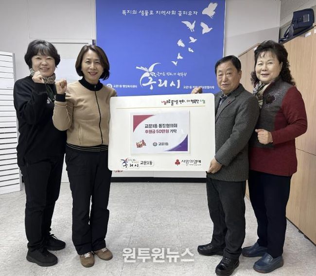이번 후원금은 교문1동 통장협의회 소속 통장들이 지역사회에 보탬이 되고자 뜻을 모아 자발적으로 마련한 것으로, 관내 저소득 취약계층과 복지 사각지대 해소를 위한 지원 사업에 사용될 예정이다.
