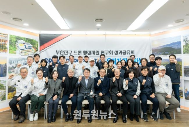(원투원뉴스) 부산 부산진구는 지난 18일 구청 다복실에서 드론업무 유관 공무원과 동의대학교 드론봉사단 등 관계자들이 참석한 가운데 ‘2025년 부산진구 드론 행정지원 연구회 성과공유회’를 개최했다고 밝혔다.