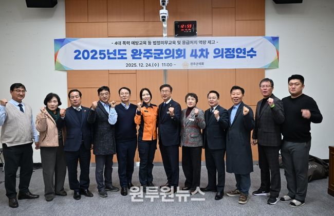 (원투원뉴스) 완주군의회는 24일 군의회 문화강좌실에서 ‘2025년도 제4차 의정연수’를 실시했다.