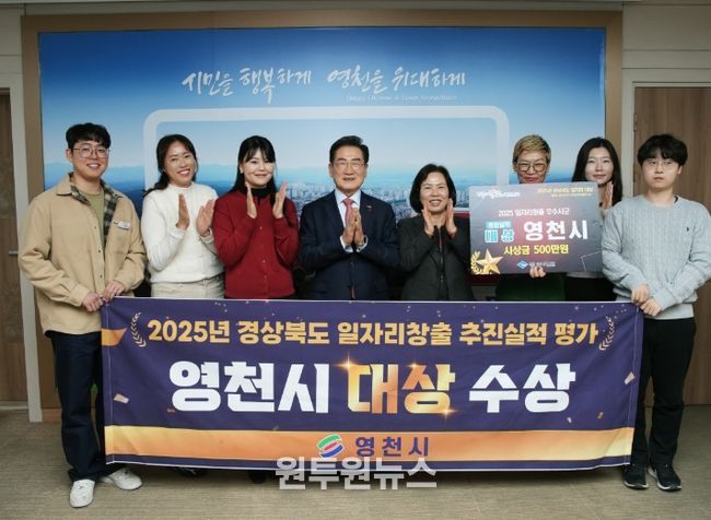 (원투원뉴스) 영천시는 지난 23일 안동에서 열린 ‘2025년 경상북도 일자리 창출 추진실적 시군 평가’에서 대상을 수상하며, 6년 연속 고용 창출 우수 지방자치단체로 선정됐다고 밝혔다.