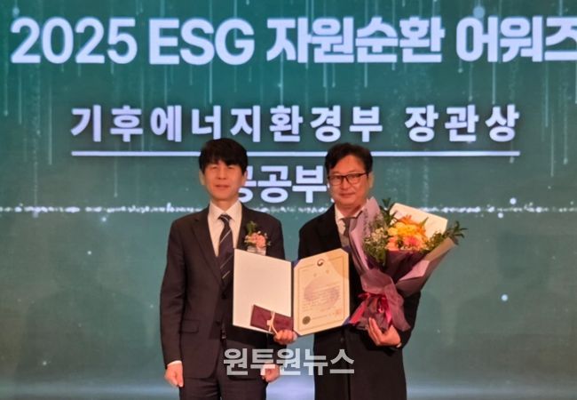 (원투원뉴스) 제주국제자유도시개발센터는 E-순환거버넌스가 주최한 ‘2025 ESG 자원순환 어워즈’에서 자원순환 우수 실천기관으로 선정돼 기후에너지환경부 장관상을 수상했다고 24일 밝혔다.