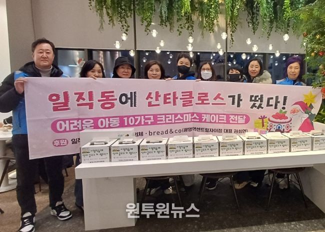 (원투원뉴스) 광명시 일직동 지역사회보장협의체는 지난 23일 크리스마스를 맞아 관내 한부모가족 10가구에 케이크를 전달했다.