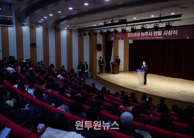 (원투원뉴스) 여주시는 23일 여성회관 공연장에서 2025년 연말 시상식을 개최하여 2025년 한해 동안 시정 발전과 지역 사회 공헌에 기여한 유공자 90명에게 표창을 수여했다.
